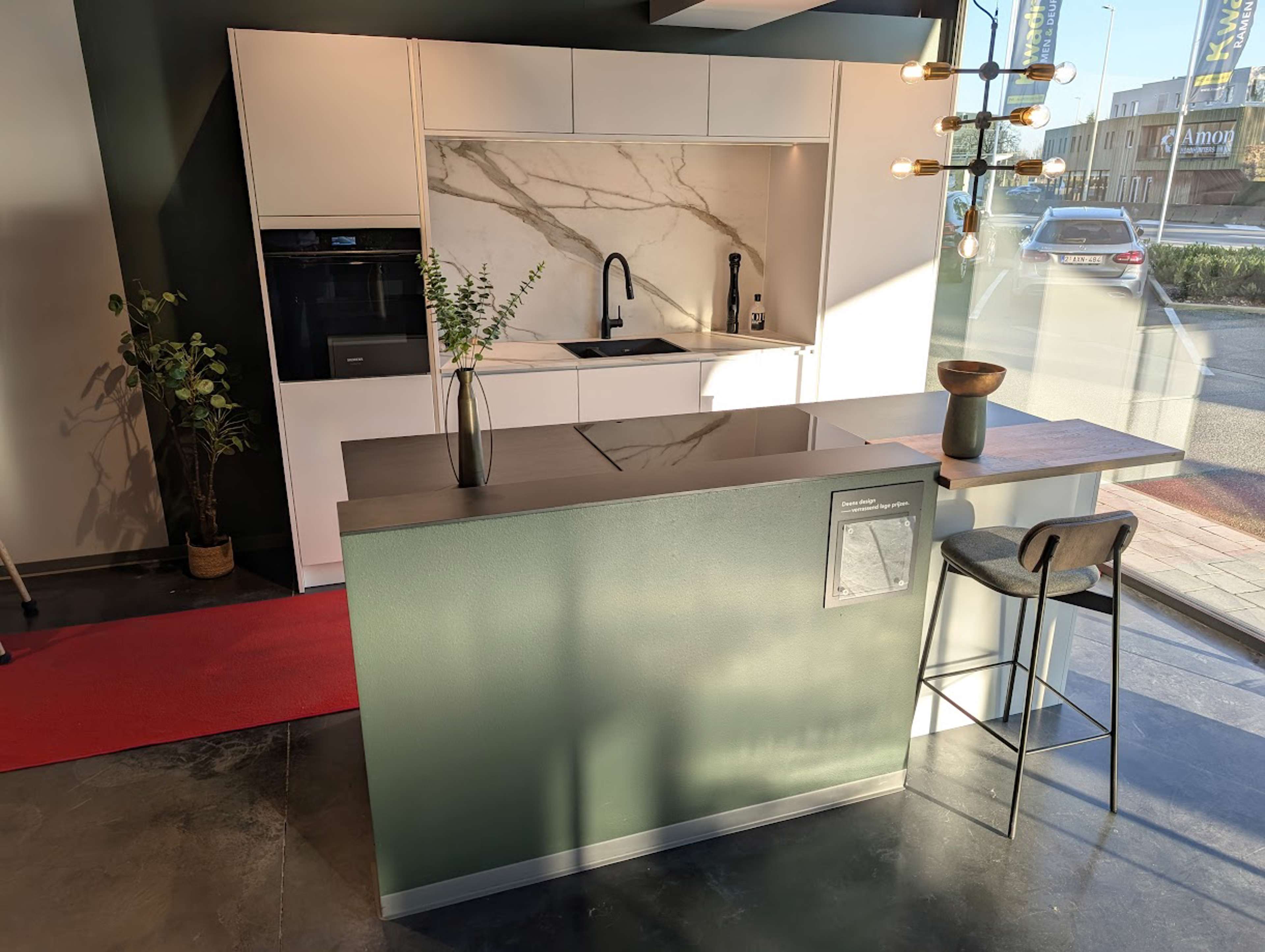 Prijzen zijn steeds inclusief toestellen, werkblad, kasten, kraan, spoelbak,…